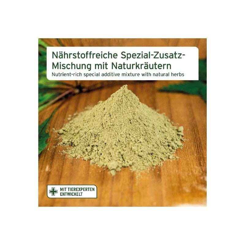 Das Pulver kann einfach unter das tägliche Futter gemischt werden. Empfehlenswert ab der 16. Lebenswoche.