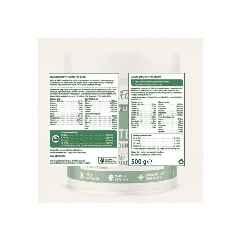 AniForte BARF Complete ist die natürliche, ausgewogene und artgerechte Rundumversorgung für Deinen Hund und eine sinnvolle Ergänzung zur Fütterung. Die Spezial-Zusatz-Mischung mit Kräutern bietet Deinem Hund die notwendigen Nährstoffe, die er täglich für ein vitales und fröhliches Hundeleben benötigt.