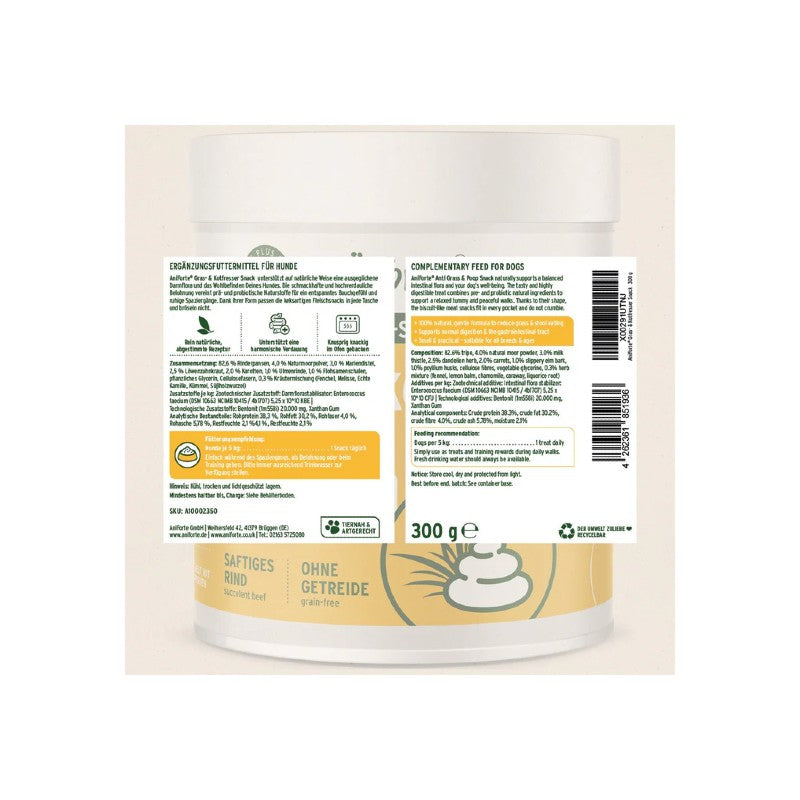 Wenn Dein Hund ungewöhnliches Fressverhalten zeigt, stimmt etwas nicht! Das Fressen von Kot oder Gras kann ein Hinweis auf Magen-Darm-Beschwerden, Übersäuerung oder einen Nährstoffmangel sein. Unsere AniForte Kot- & Grasfresser Snacks sind die perfekte Wahl, um Deinen Hund zu verwöhnen und gleichzeitig sein Wohlbefinden auf natürliche Weise zu unterstützen.