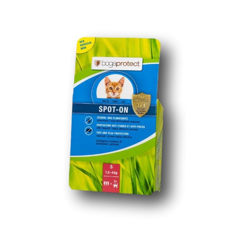 Bogaprotect Spot-On Katze setzt auf den Wirkstoff Eukalyptus citriodora, hydratisiert, cyclisiert. Dieser wird aus Blättern des Lemonen Eukalyptus gewonnen und gilt als wirksamster Insektenschutz natürlicher Herkunft. Effektiver abwehrender Schutz gegen Flöhe und Zecken