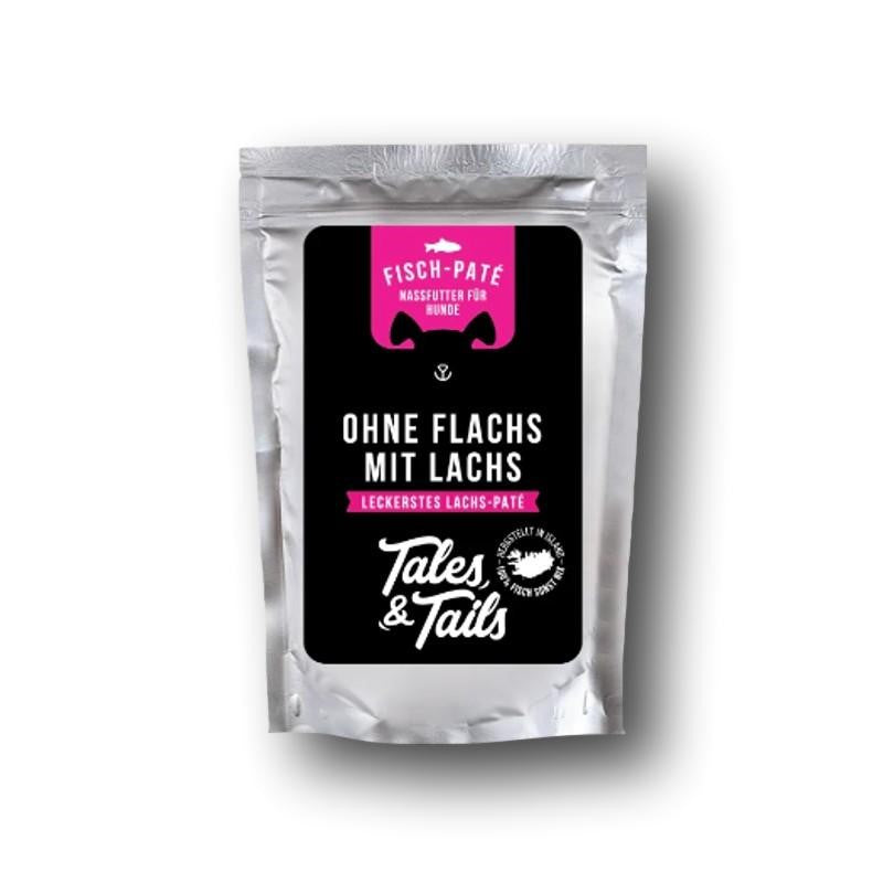 Tales & Tails ohne Flachs mit Lachsköstliches Fish Dish besteht aus nichts anderem als leckerem Lachs. Frischer Geschmack, reich an Omega-3 Fettsäuren und auch wunderbar für sensible Esser und Feinschmecker geeignet. PS: Nicht nur gut für deinen Vierbeiner, sondern auch für andere, denn mit jeder Tüte geht eine Spende an Tierschutzprojekte.
