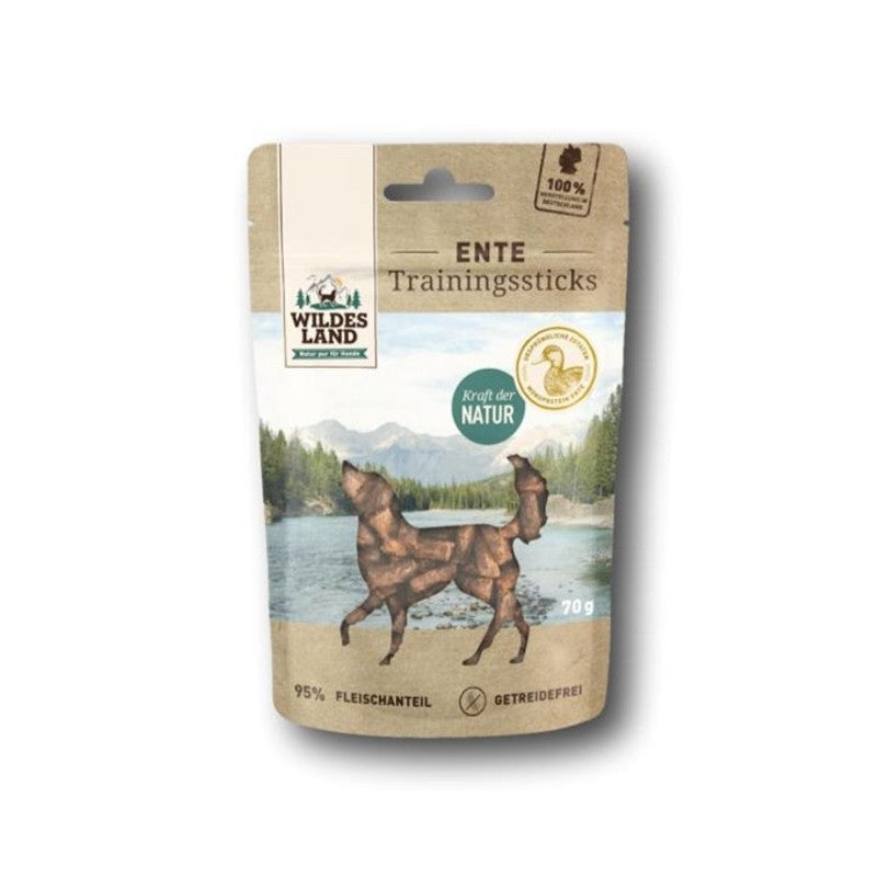 Wildes Land Trainingsstick Ente unterstützen Sie die Gesundheit Ihres Hundes auch in Trainingssituationen. Optimieren Sie das Training Ihres Hundes, indem Sie gewünschtes Verhalten mit einem gesunden und naturbelassenen Leckerbissen positiv bestärken.